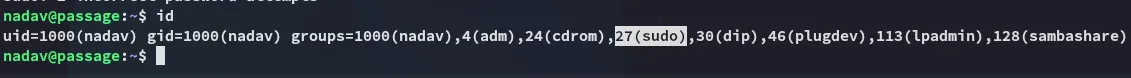 Unfortunately for us though we can’t do anything with the sudo group as we don’t have the password for nadav…