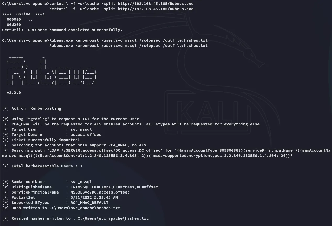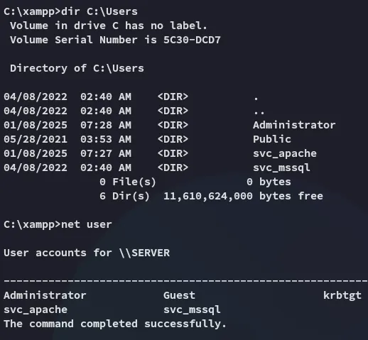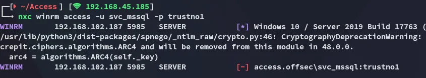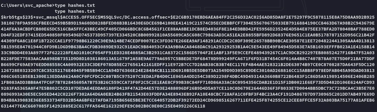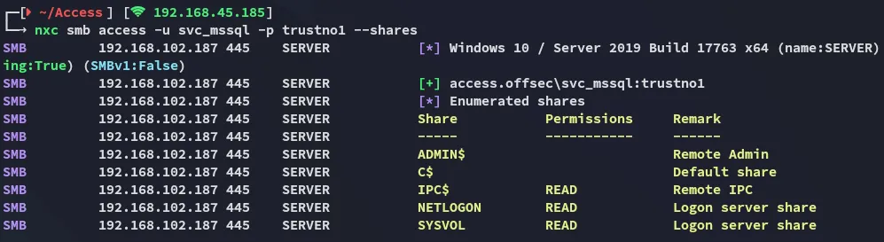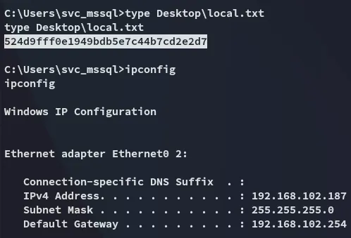 Seems there’s another service account, svc_mssql. This LIKELY means we’ll have to do some lateral movement before getting Admin privs.