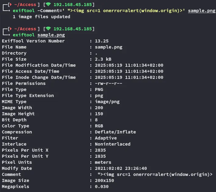 Let’s try it out by adding a XSS comment inside the picture instead.