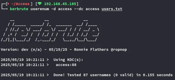I went ahead and used username-anarchy to create a username list out of them and tried to use kerbrute to enumerate users: