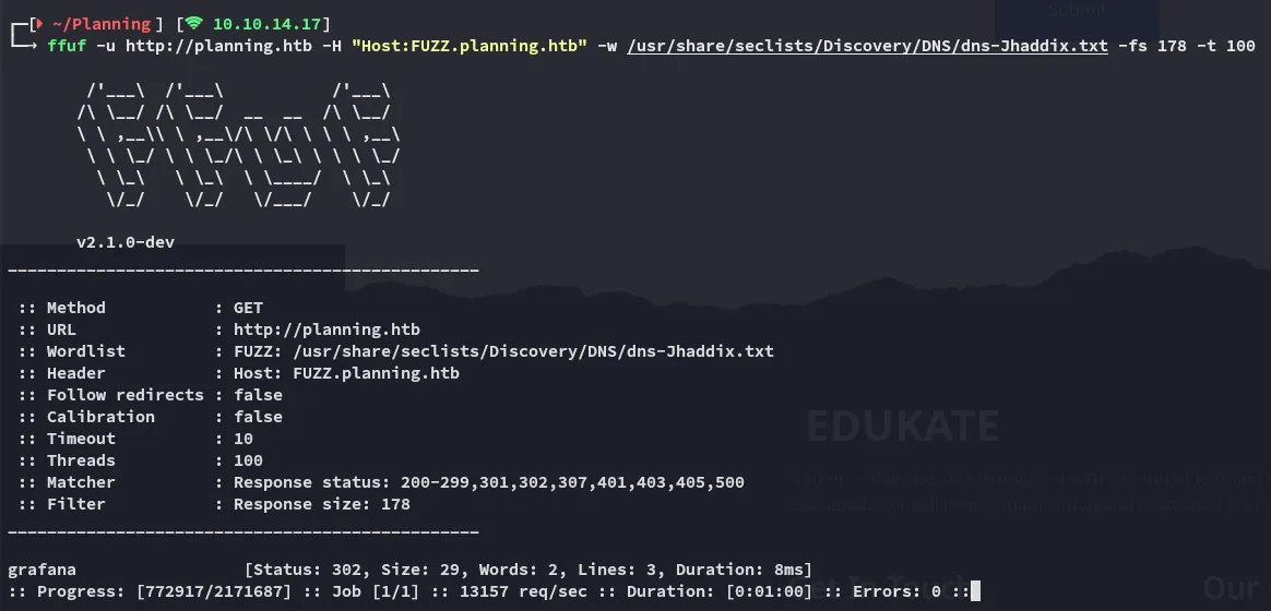 PORT STATE SERVICE REASON VERSION22/tcp open ssh syn-ack OpenSSH 9.6p1 Ubuntu 3ubuntu13.11 (Ubuntu Linux; protocol 2.0)80/tcp open http syn-ack nginx 1.24.0 (Ubuntu)| http-methods:|_ Supported Methods: GET HEAD POST|_http-title: Edukate - Online Education Website|_http-server-header: nginx/1.24.0 (Ubuntu)Service Info: OS: Linux; CPE: cpe:/o:linux:linux_kernel