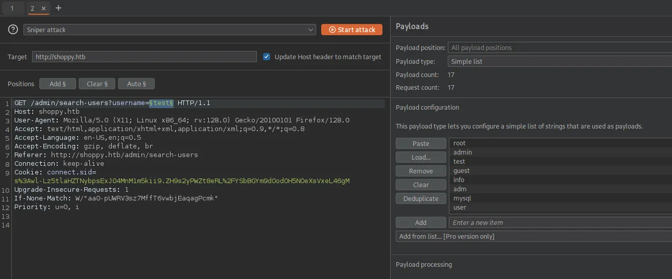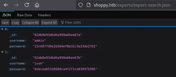 Since we already know that there’s a NoSQLi vulnerability we can leverage it to find all present users: