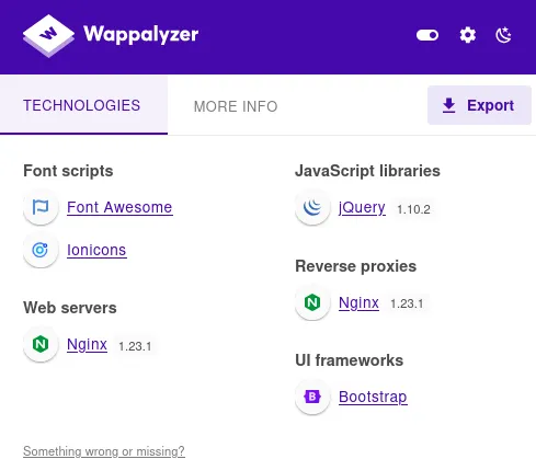 This isn’t really helpful for now. Checking wappalyzer yields nothing interesting either: