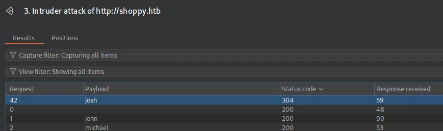 Using this knowledge we can initiate a burp Intruder attack where we use a list with usernames to fuzz for existing users.