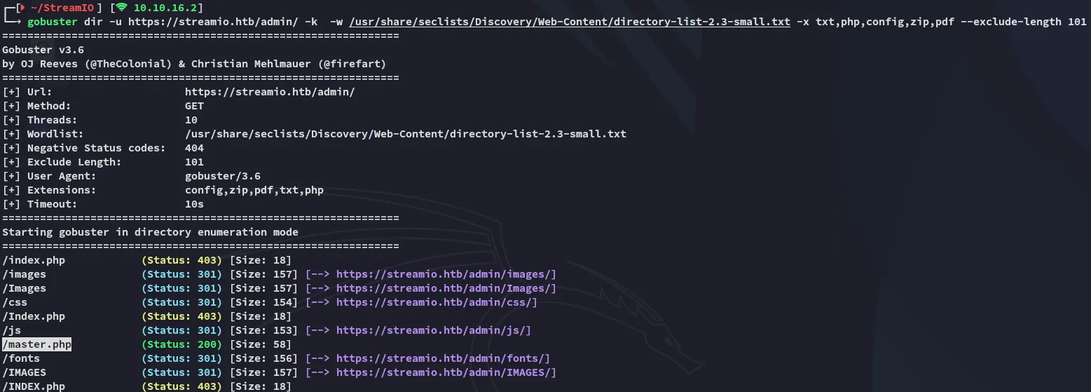 Here I found the /master.php endpoint, which feroxbuster did not manage to find.