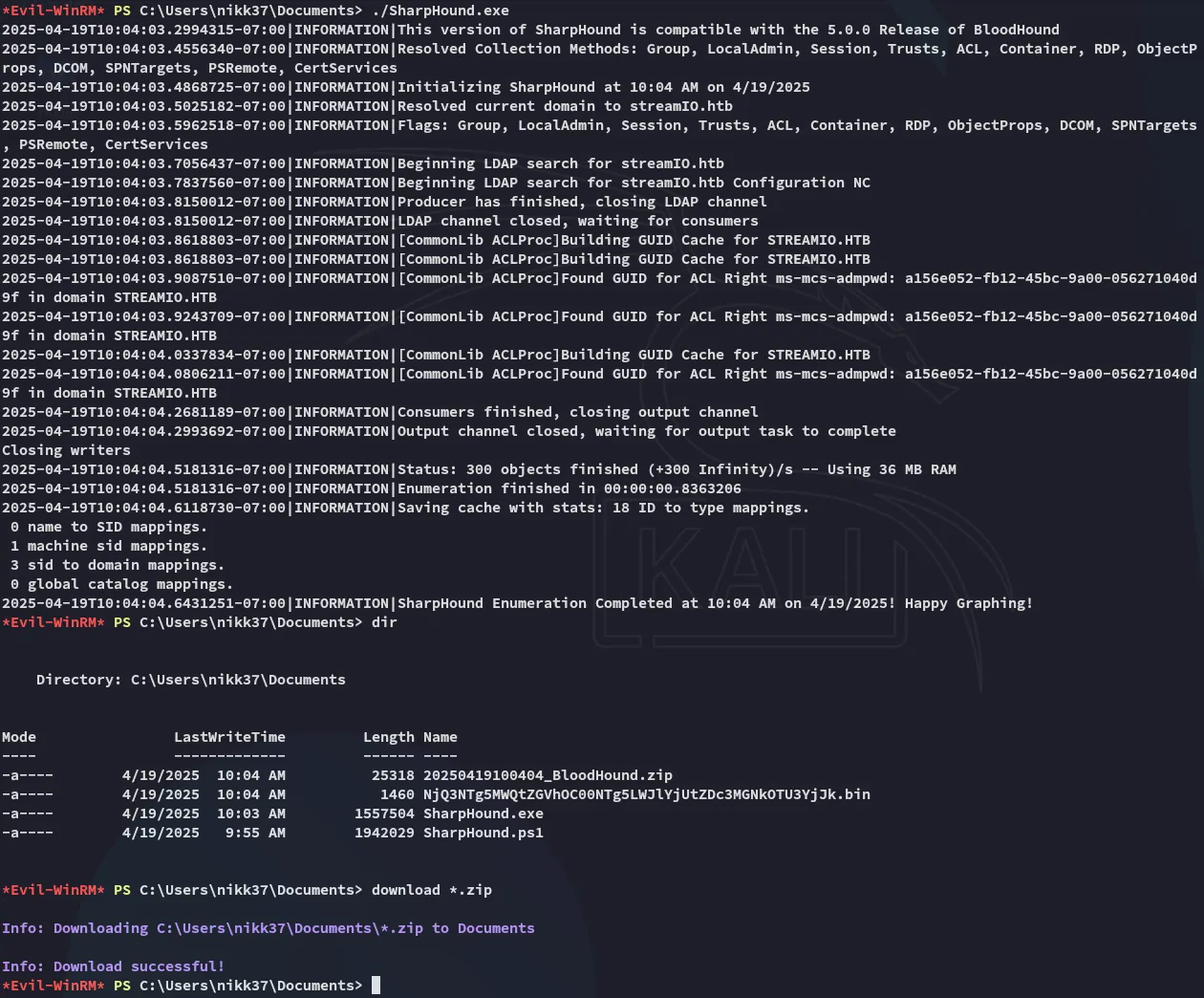 To fully grasp the AD network I will upload SharpHound.ps1 and execute it, then check out the results in BloodHound.