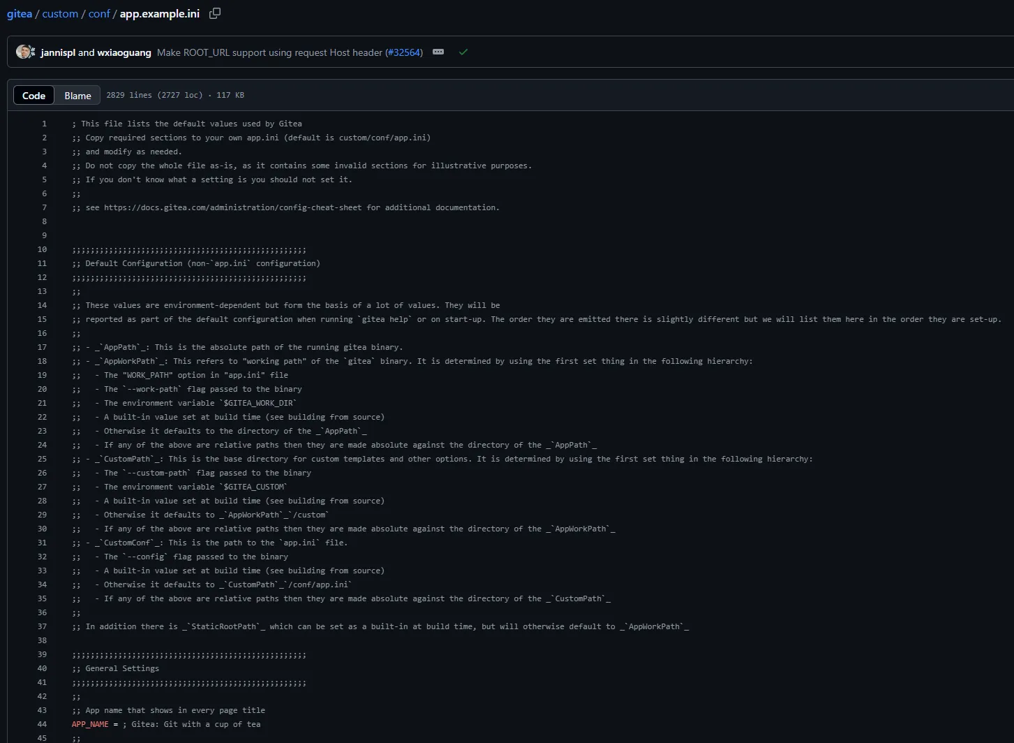 As per the official GitHub repo we should be able to check out the /gitea/<CUSTOM>/conf/app.ini page: