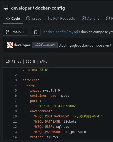 We find a MYSQL_ROOT_PASSWORD: