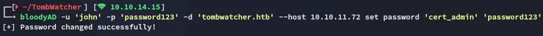 Now that that is done we need to use bloodyAD again to set a new password for this account: