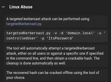 For this vector there’s multiple sorts of abuse, but I’ll try out the targeted kerberoast first.