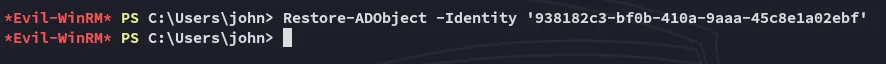 [!TLDR] Explanation I am hunting for a previously deleted privileged user, likely tied to Certificate Services abuse (ESC1/ESC6/etc.). If I can restore