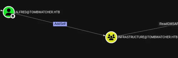 # Verify changenet rpc group members "INFRASTRUCTURE" -U "tombwatcher.htb/Alfred"%"basketball" -S "DC01.tombwatcher.htb"