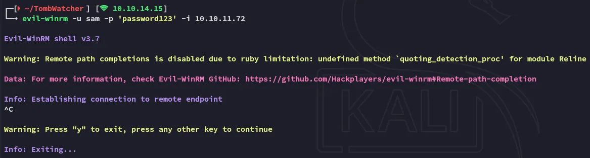 Not fully there yet however, we still cannot log into winrm with this user, since this is a certificate service account we need to use certipy-ad to find vulnerabilities that we can exploit.