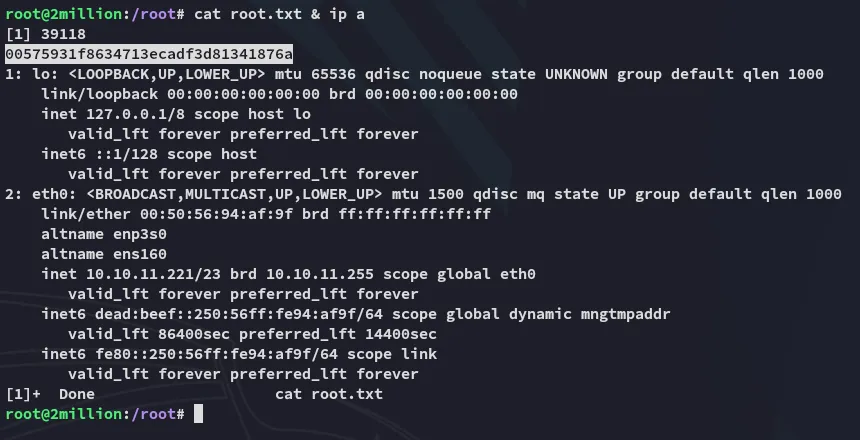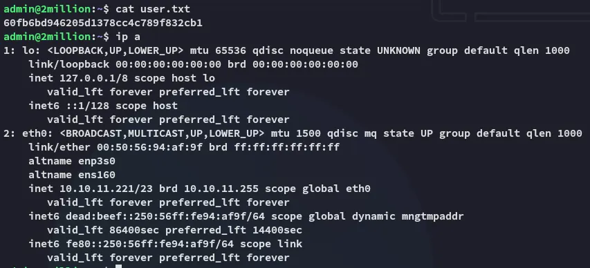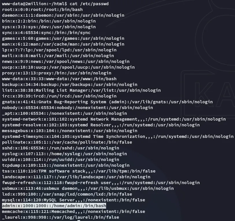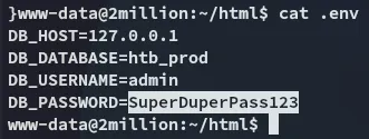 From: ch4p <ch4p@2million.htb>To: admin <admin@2million.htb>Cc: g0blin <g0blin@2million.htb>Subject: Urgent: Patch System OSDate: Tue, 1 June 2023 10:45:22 -0700Message-ID: <9876543210@2million.htb>X-Mailer: ThunderMail Pro 5.2