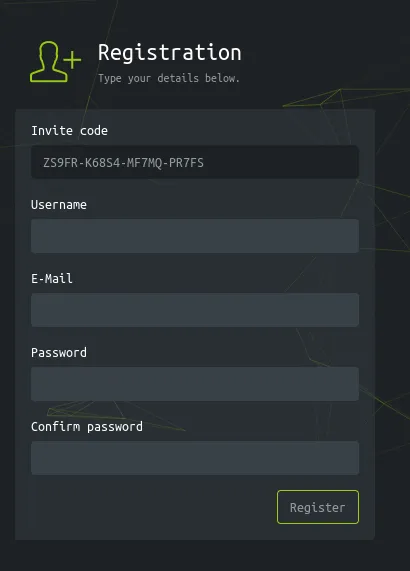 By entering this code we can access the /register endpoint: