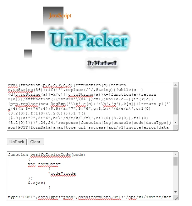 This looked like obfuscated js code, let’s unpack it.