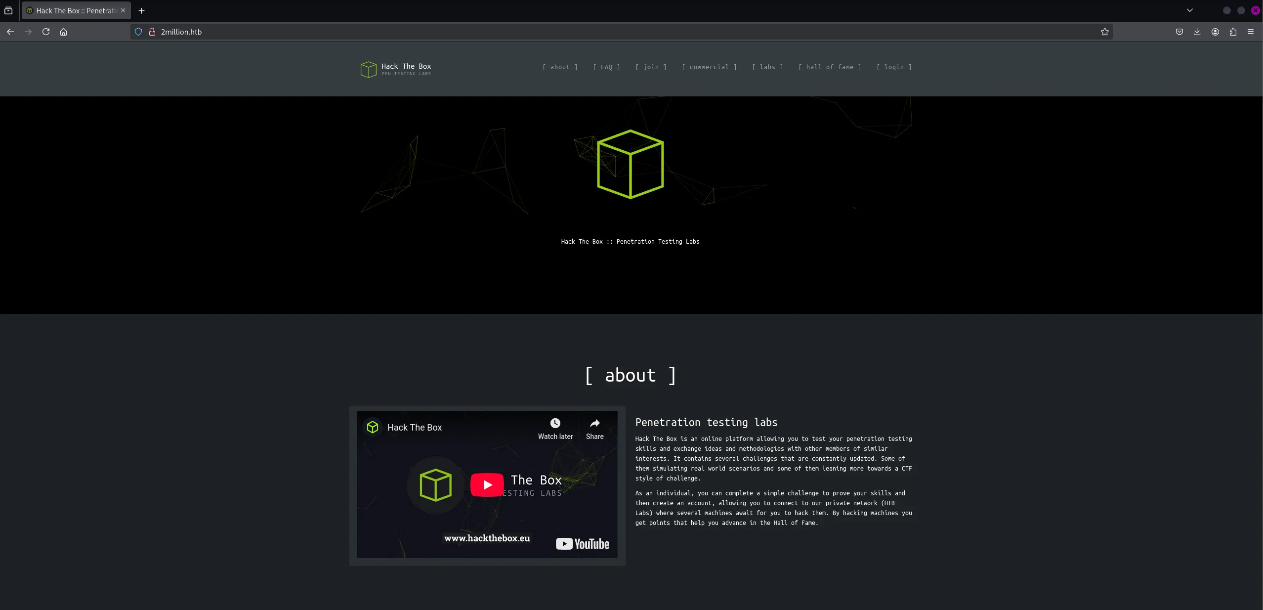 PORT STATE SERVICE REASON VERSION22/tcp open ssh syn-ack OpenSSH 8.9p1 Ubuntu 3ubuntu0.1 (Ubuntu Linux; protocol 2.0)80/tcp open http syn-ack nginx| http-methods:|_ Supported Methods: GET|_http-favicon: Unknown favicon MD5: 20E95ACF205EBFDCB6D634B7440B0CEE| http-cookie-flags:| /:| PHPSESSID:|_ httponly flag not set|_http-title: Hack The Box :: Penetration Testing Labs|_http-trane-info: Problem with XML parsing of /evox/aboutService Info: OS: Linux; CPE: cpe:/o:linux:linux_kernel80/TCP - HTTP