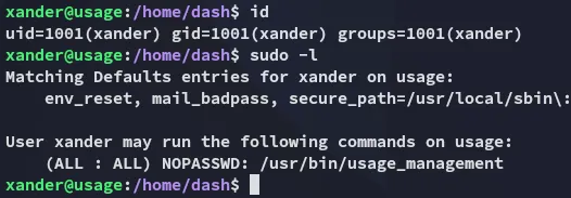 It turns out xander can run the usage_management binary as root: