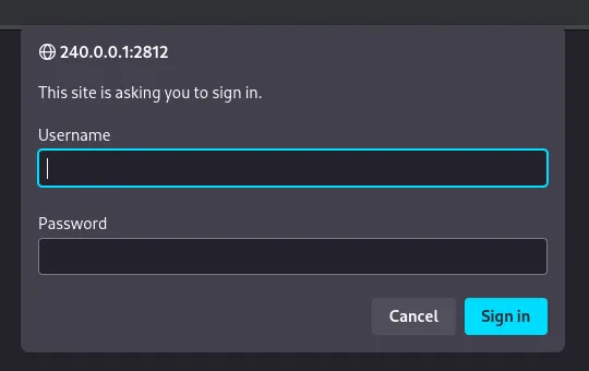 admin3nc0d3d_pa$$w0rdHowever in order to access this instance we need to create a port forward since it’s only running on localhost.