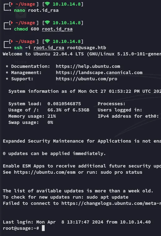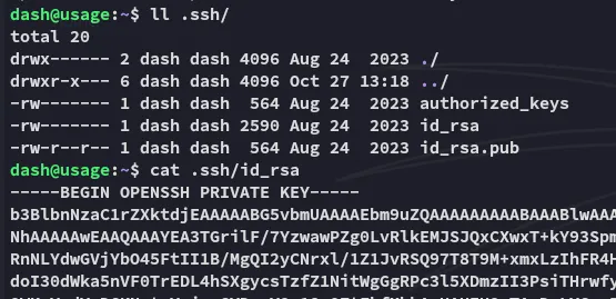 Upon execution we see the id_rsa for root being dumped:
