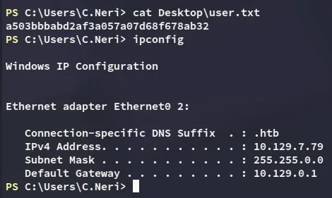 It appears C.Neri has remote management access, meaning we should be able to winrm into the system.