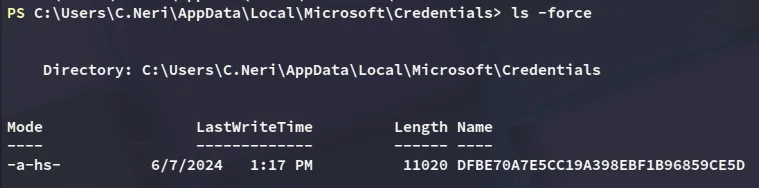 Eventhough we can’t use cmdkey /list, we can check the local credentials: