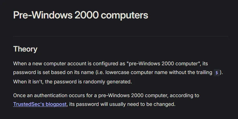 Being a member of the Pre-Windows 2000 Compatible Access group as a computer means the password is HIGHLY LIKELY the same as the computer name, as per this article: