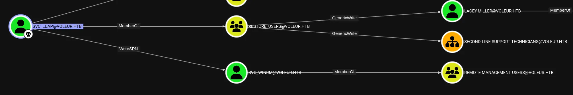 svc_ldapM1XyC9pW7qT5VnNow that I know that that account has valid creds I return to bloodhound.