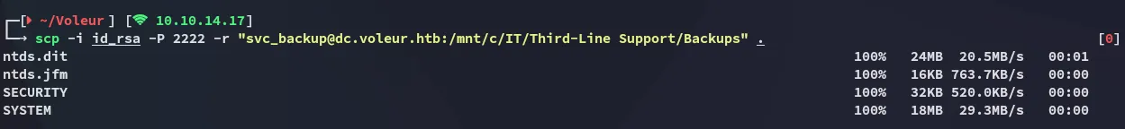 scp -i id_rsa -P 2222 -r "svc_backup@dc.voleur.htb:/mnt/c/IT/Third-Line Support/Backups" .