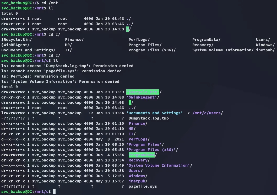 It was within the /mnt directory where I was able to find all the sweet stuff: