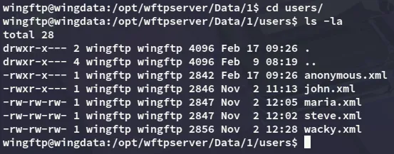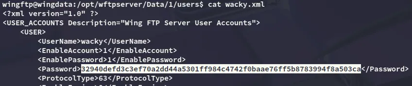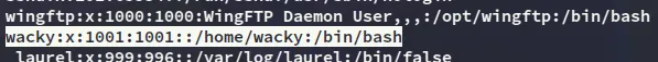 Inside this folder was the wacky.xml file, and this is a valid user on the ssh server.