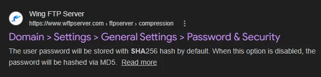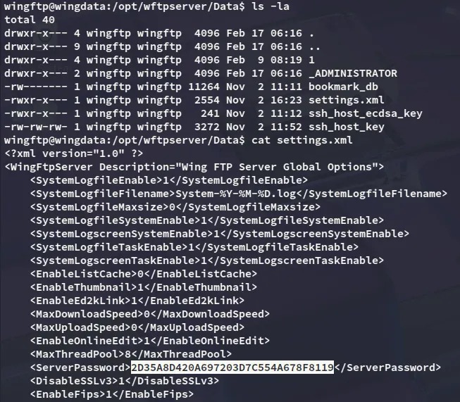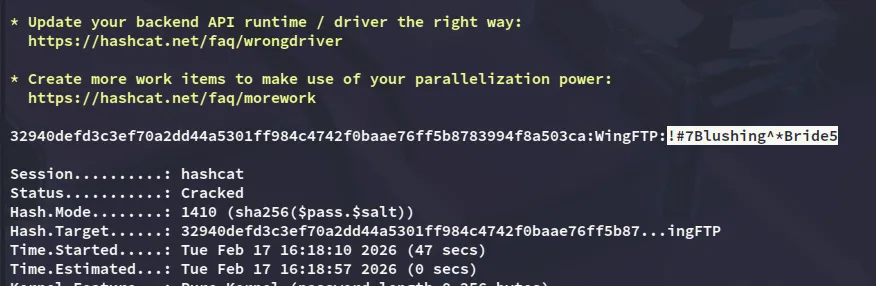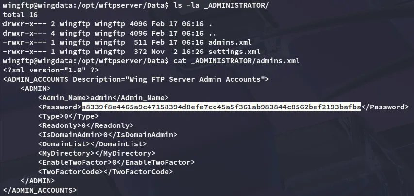 I noticed that I had to use WingFTP as the salt so I appended it to my hash, then used hashcat to crack it: